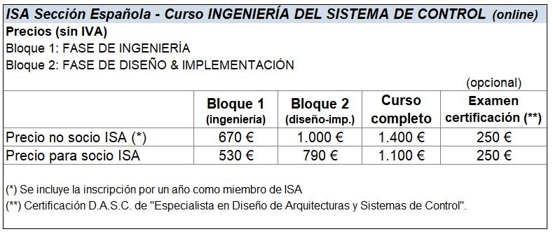 Opcional: Examen online de certificación D.A.S.C. como “Especialista en Diseño de Arquitecturas y Sistemas de Control” con certificado emitido por ISA Sección Española.