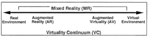 Dos años más tarde, Milgram y Kishno empezaron a intuir que la realidad “de toda la vida” se iría mezclando con otra información generada mediante computación en una graduación muy diversa, creando una especie de continuo entre la realidad física y la realidad virtual totalmente “inventada”. Lo representaron gráficamente en esta figura: