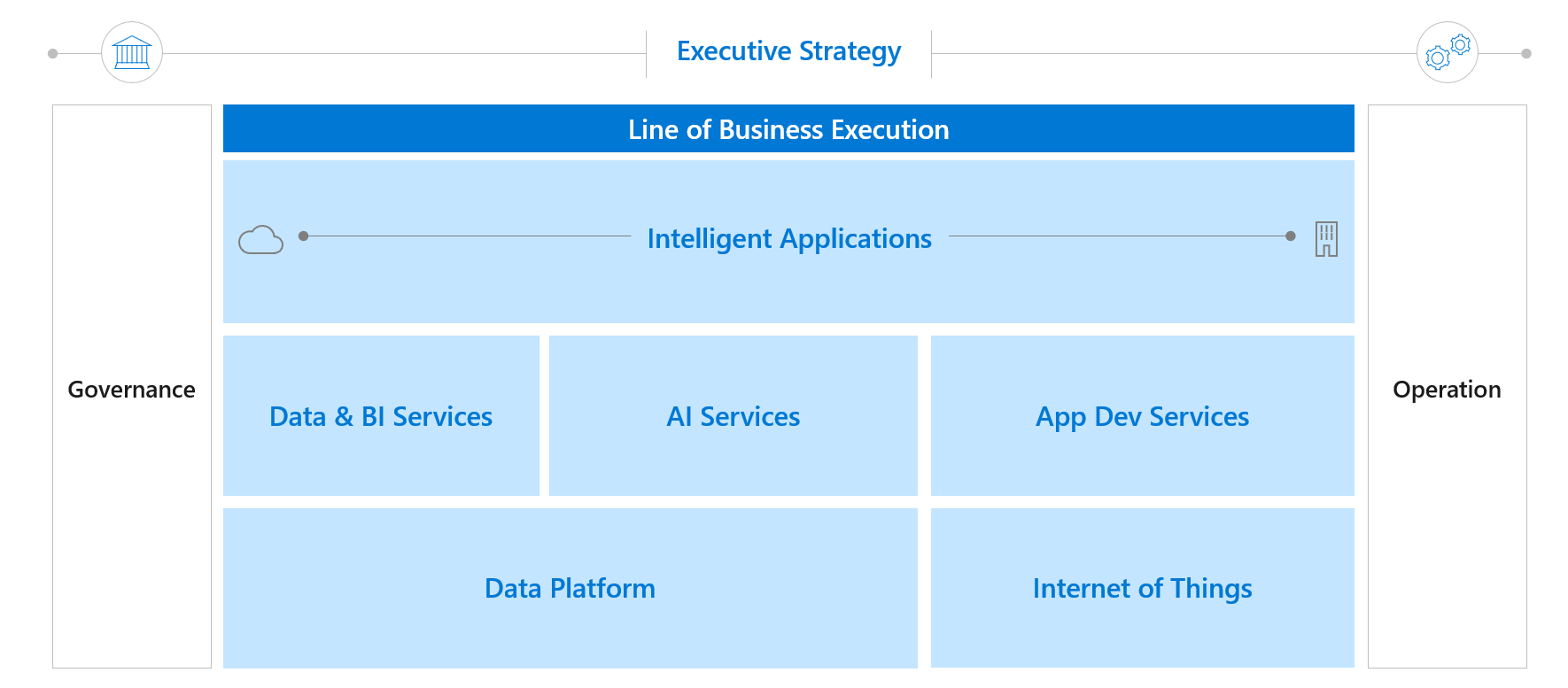 - AI Services: La IA se compone de muchas áreas y disciplinas diferentes, sin embargo, si nos centramos en las capacidades críticas de una organización impulsada por la inteligencia, comenzamos por analizar el análisis predictivo, que es una extensión natural de la inteligencia empresarial y, para muchas organizaciones, el primer paso hacia la IA. Una de las capacidades básicas de la IA es el aprendizaje automático, ya que permite la identificación de patrones en los datos y la creación de modelos reutilizables para automatizar la lógica de negocios. Es importante que las distintas empresas dispongan de la capacidad de crear modelos personalizados o de usar modelos previamente entrenados, a los que se les conoce como servicios cognitivos.